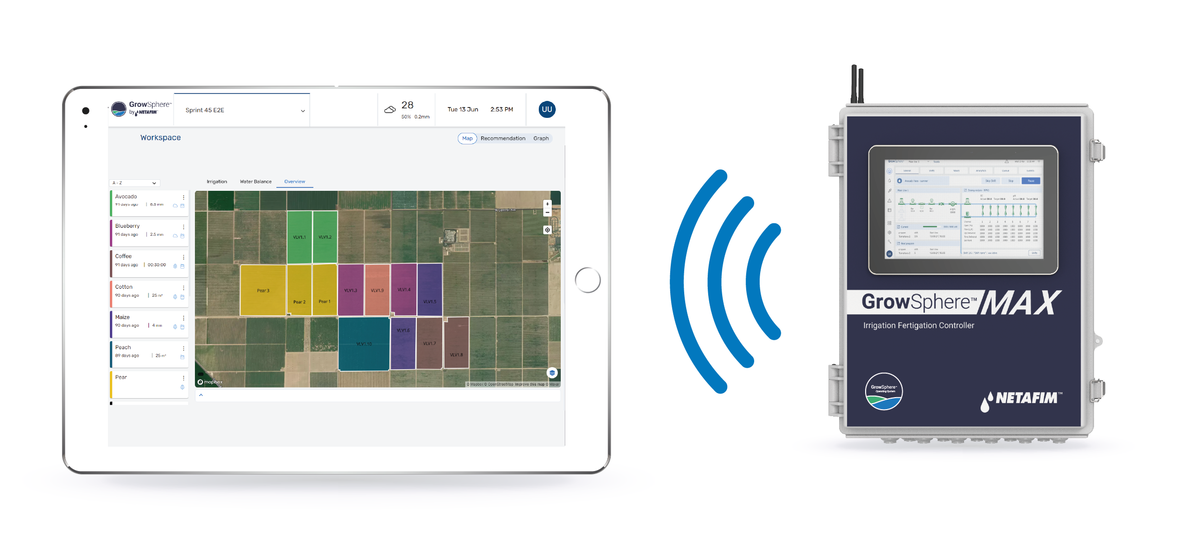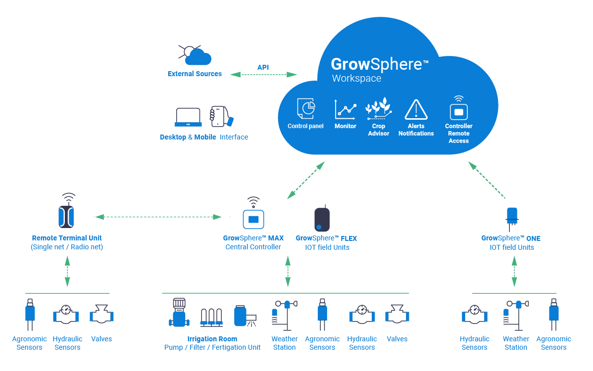 All our controllers are connected to the GrowSphere™ OS, an intuitive visual work tool that makes it easier to plan, monitor, and execute your irrigation with greater transparency and reliability. So you can minimize your operating costs while improving your yields - with a lot less effort.