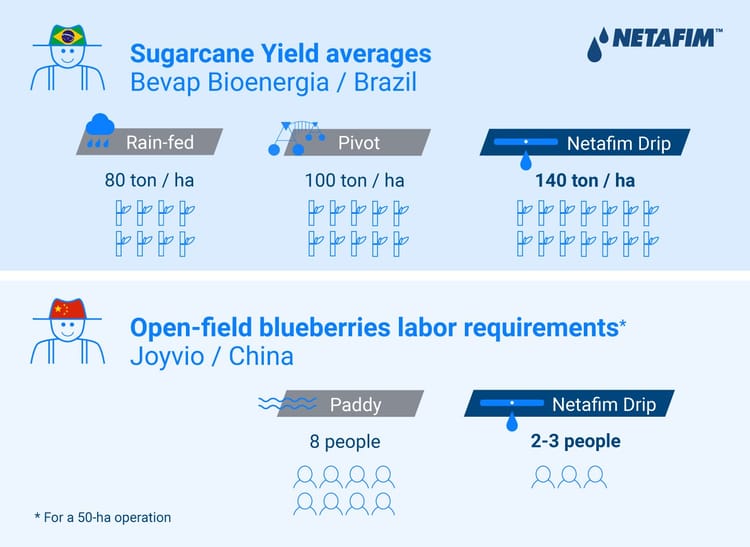 Bevap’s Ag Director Hermes Arantes was thrilled with the results, “This subsurface drip irrigation system is highly efficient. We have reached productivity of above 140 tons per ha, average durability of 15 years of production, and a quick return on investment of just three years. We are very pleased to have Netafim as our partner.”