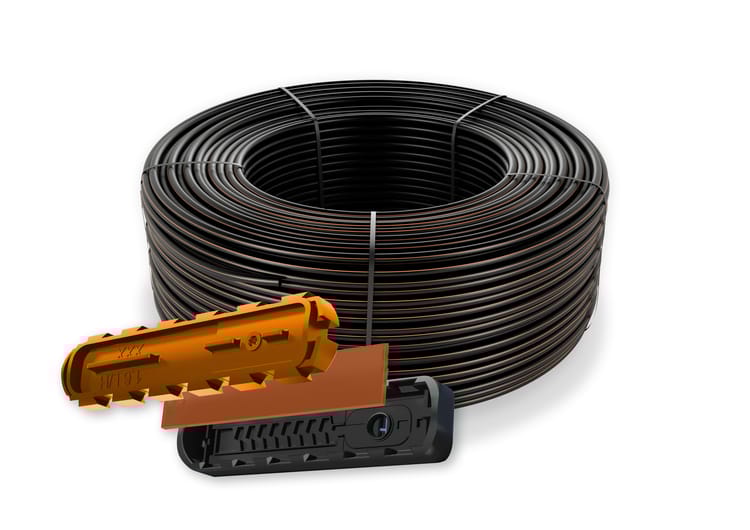Drippers are protected against root intrusion better than all other options, utilizing a patented root inhibitor within the dripper cover that prevents root intrusion into the dripper labyrinth. Better protection against root intrusion without reliance on chemicals. Long-lasting protection due to non-migrating active ingredients embedded in the dripper cover.