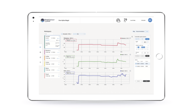 Además, ofrecemos un sistema de monitoreo continuo en tiempo real que incluye sensores de humedad puestos en la zona de la raíz, para ayudar a afinar el manejo de riego y determinar el volumen y el mejor momentoo para regar.