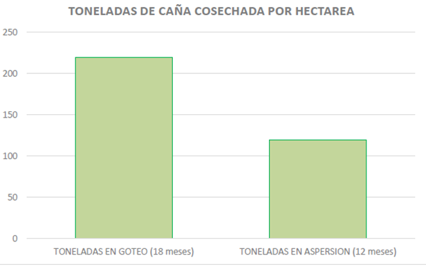 · 219 T/Ha en el primer ciclo completo (119% más de incremento en rendimiento por hectárea vs toneladas en aspersión a 12 meses)